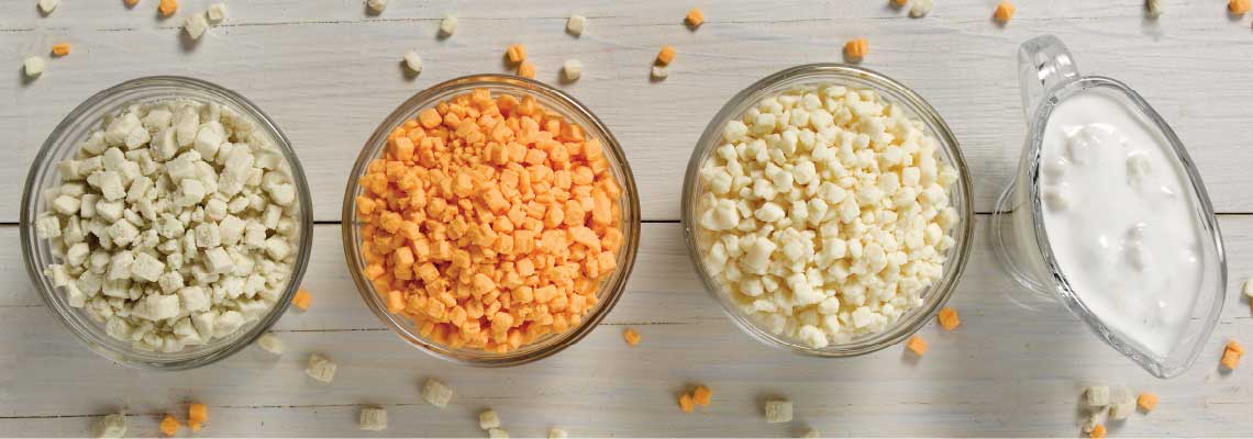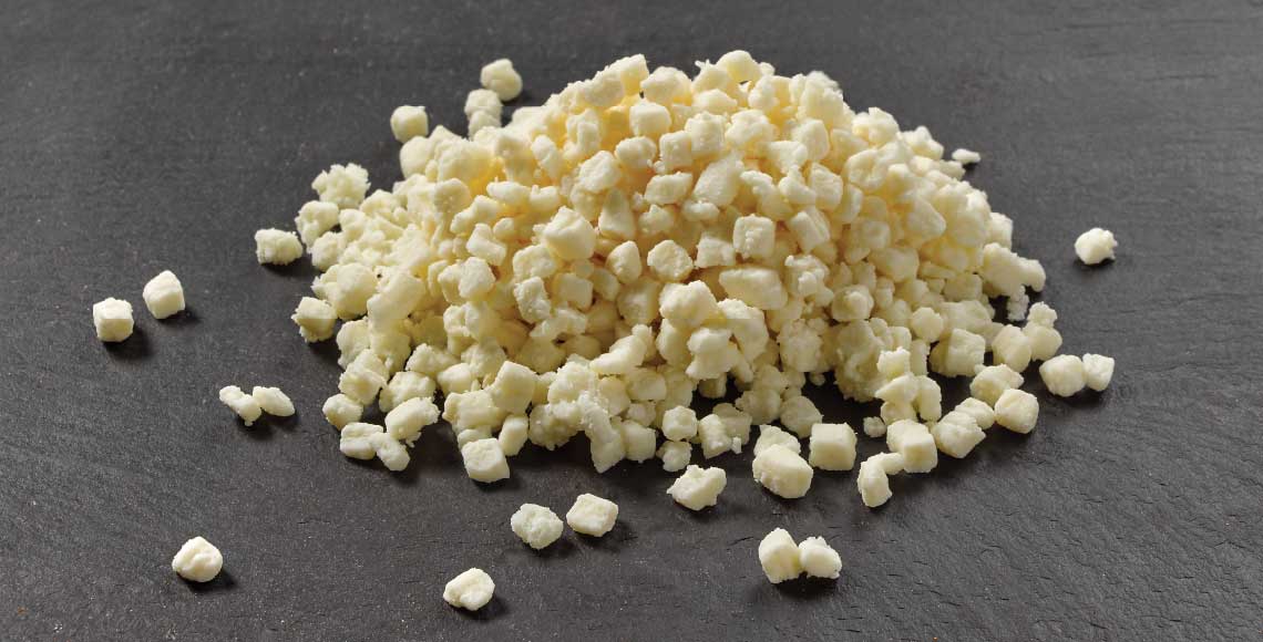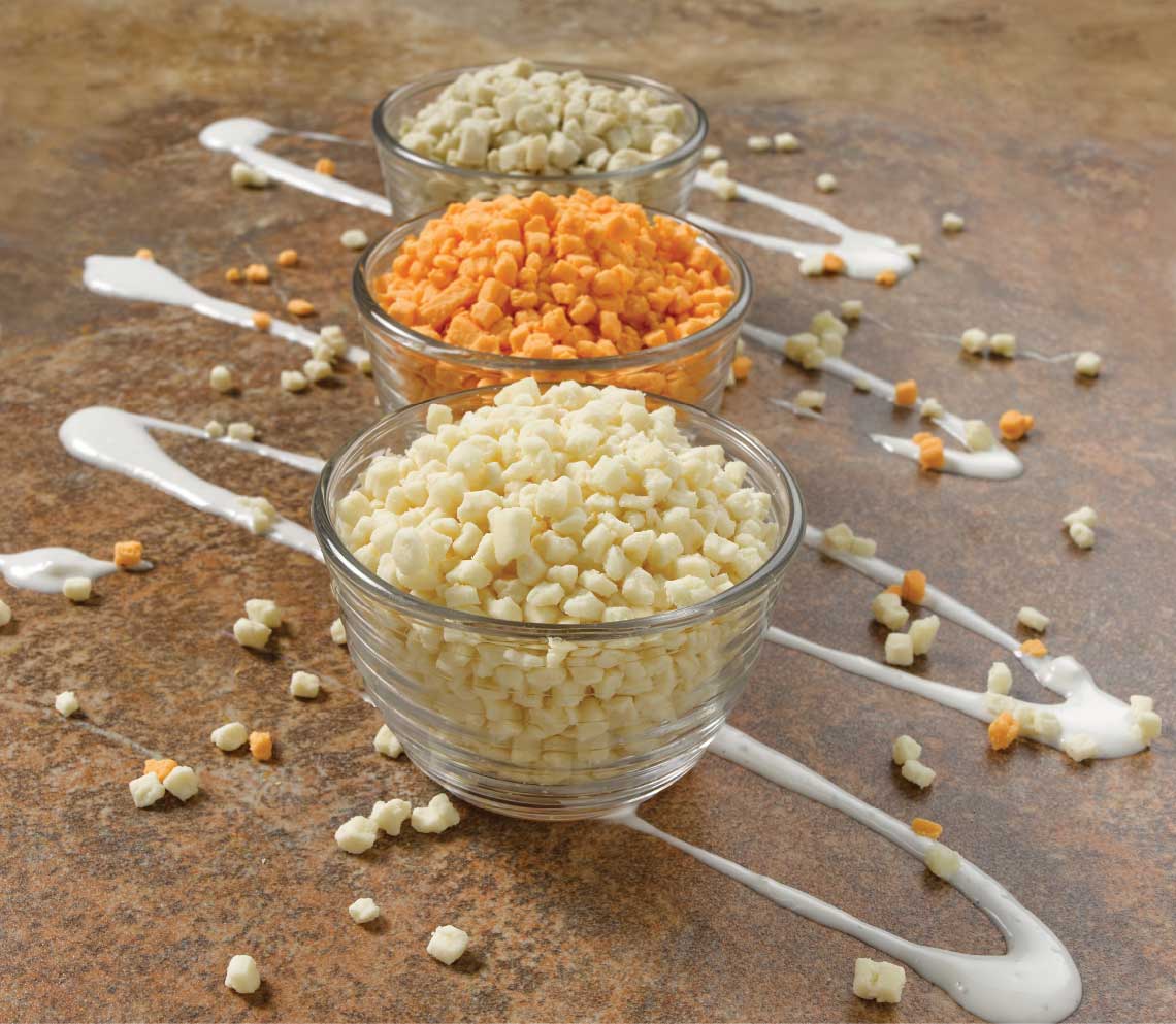 Chunkettes are shelf-stable cheese pieces that can be used anywhere you use cheese and want the ease of a shelf-stable product. They are ideal for ambient products and have low enzymatic and water activity.